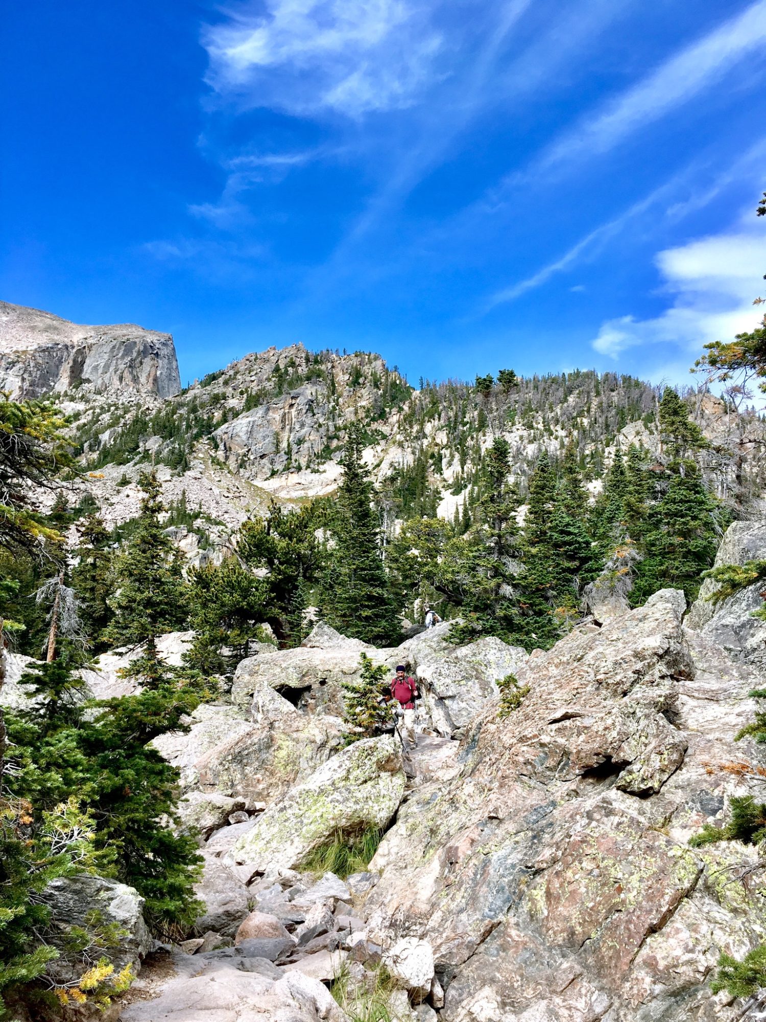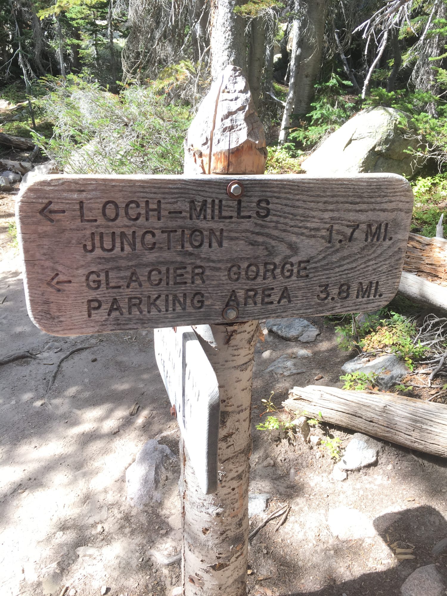 Once you reach Loch-Mills junction, the hiker can choose to go up to Sky Pond ( 9.8 mile round trip from glacier gorge trailhead) or head back to Glacier Gorge trailhead. We chose to charge on.