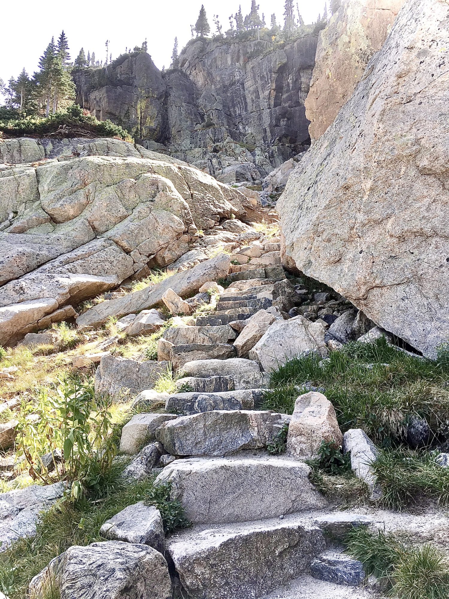 If it’s already late afternoon when you reach Loch Vale, I do not recommend continuing up to sky pond if you are not an experienced hiker since you might need to take a lot breaks due to steep stairs, wet and rocky roads and will end up hiking in the dark on the way down. Timberline Falls is another mile away from Loch Vale (8 mile roundtrip from Glacier Gorge trailhead) and is rated as a strenuous hike.