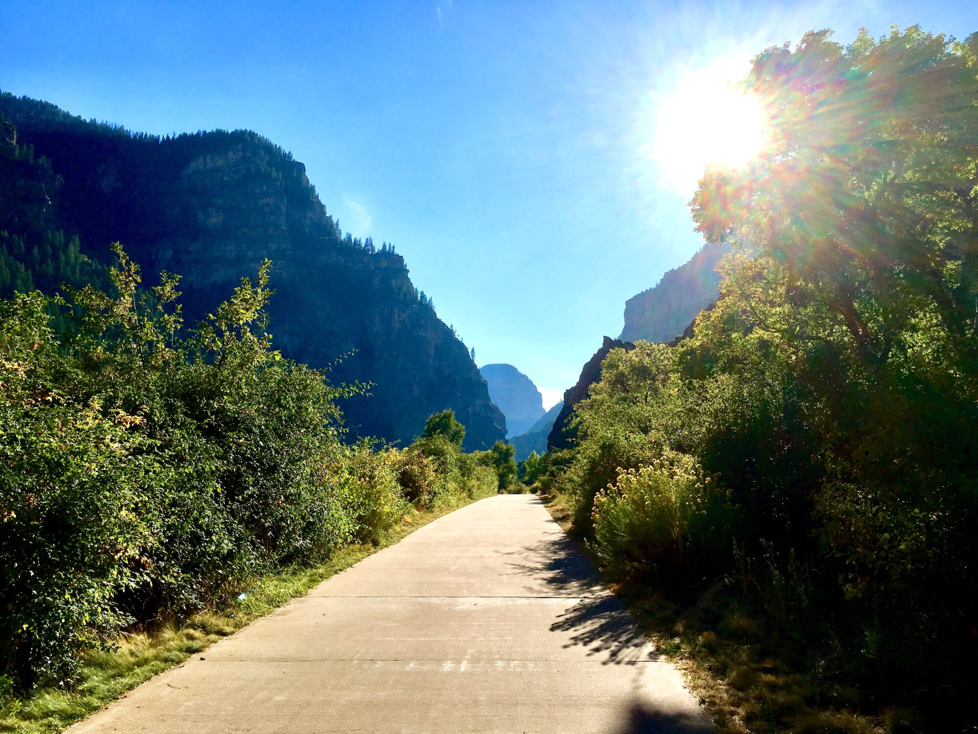 From the parking lot, you will walk a few minutes on the paved road before reaching the trailhead.