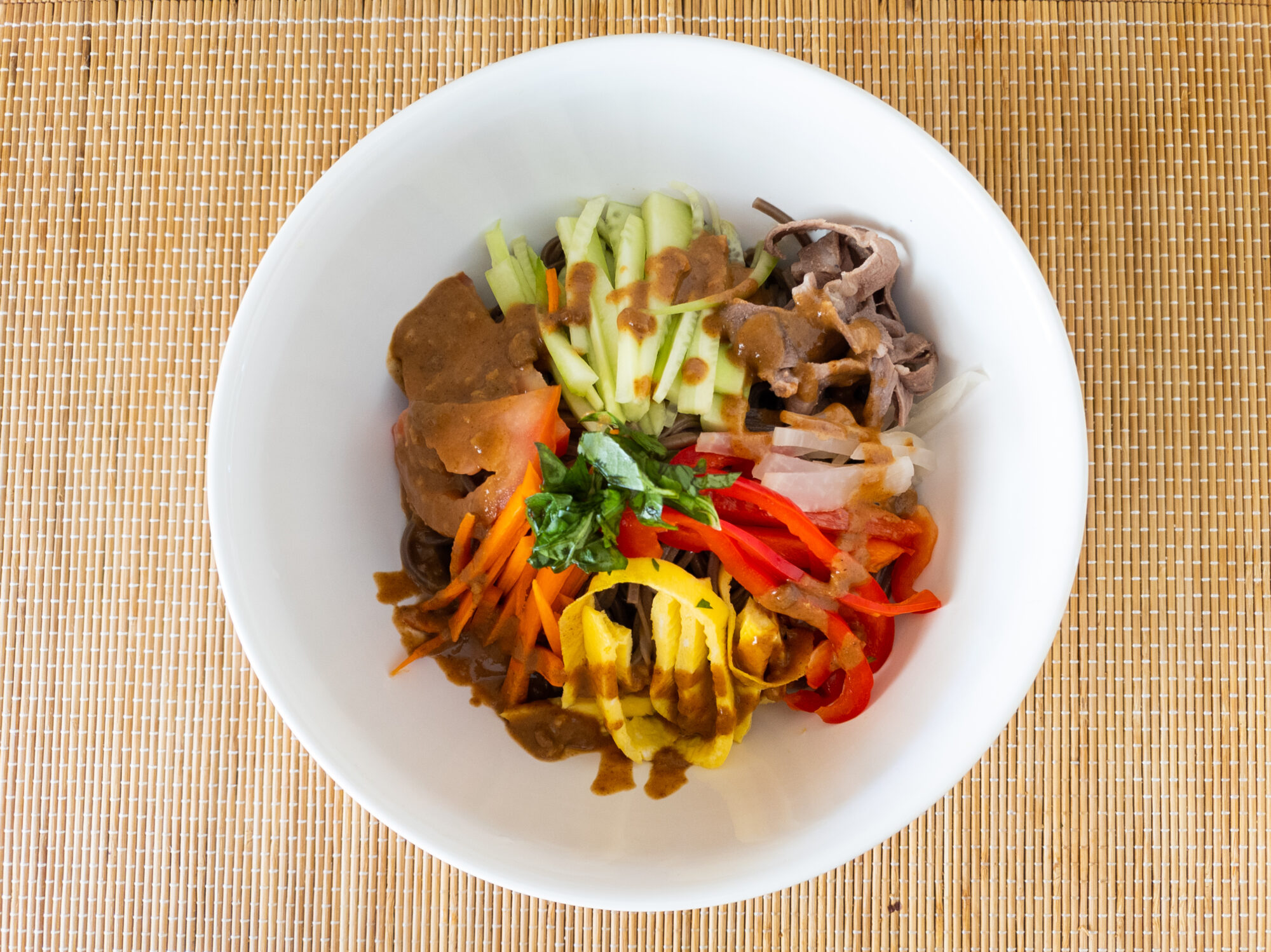 I love cold noodles! It’s easily one of my favorite refreshing summer dishes. It’s also very easy to make with lots of variation depending on what you have in the